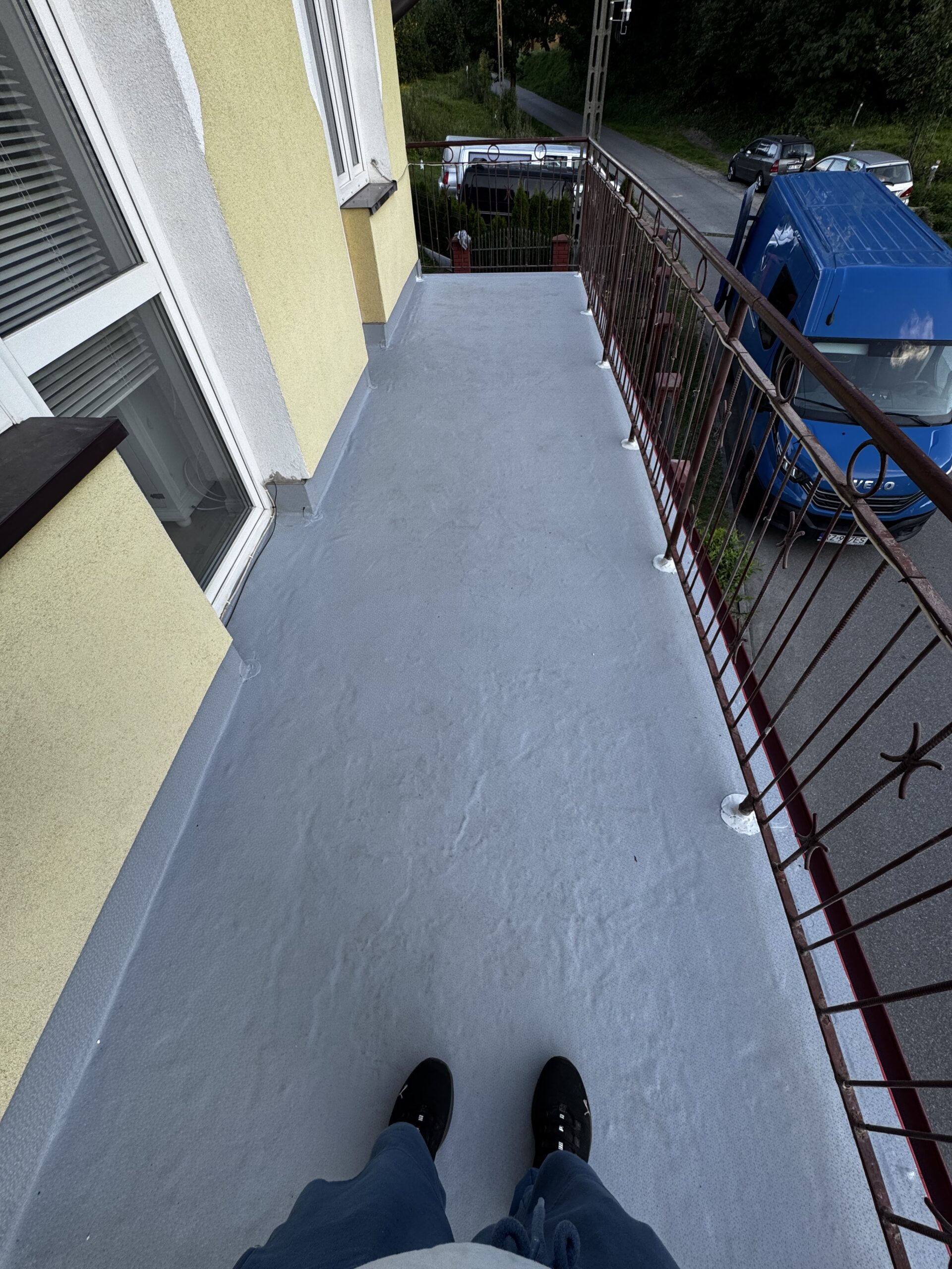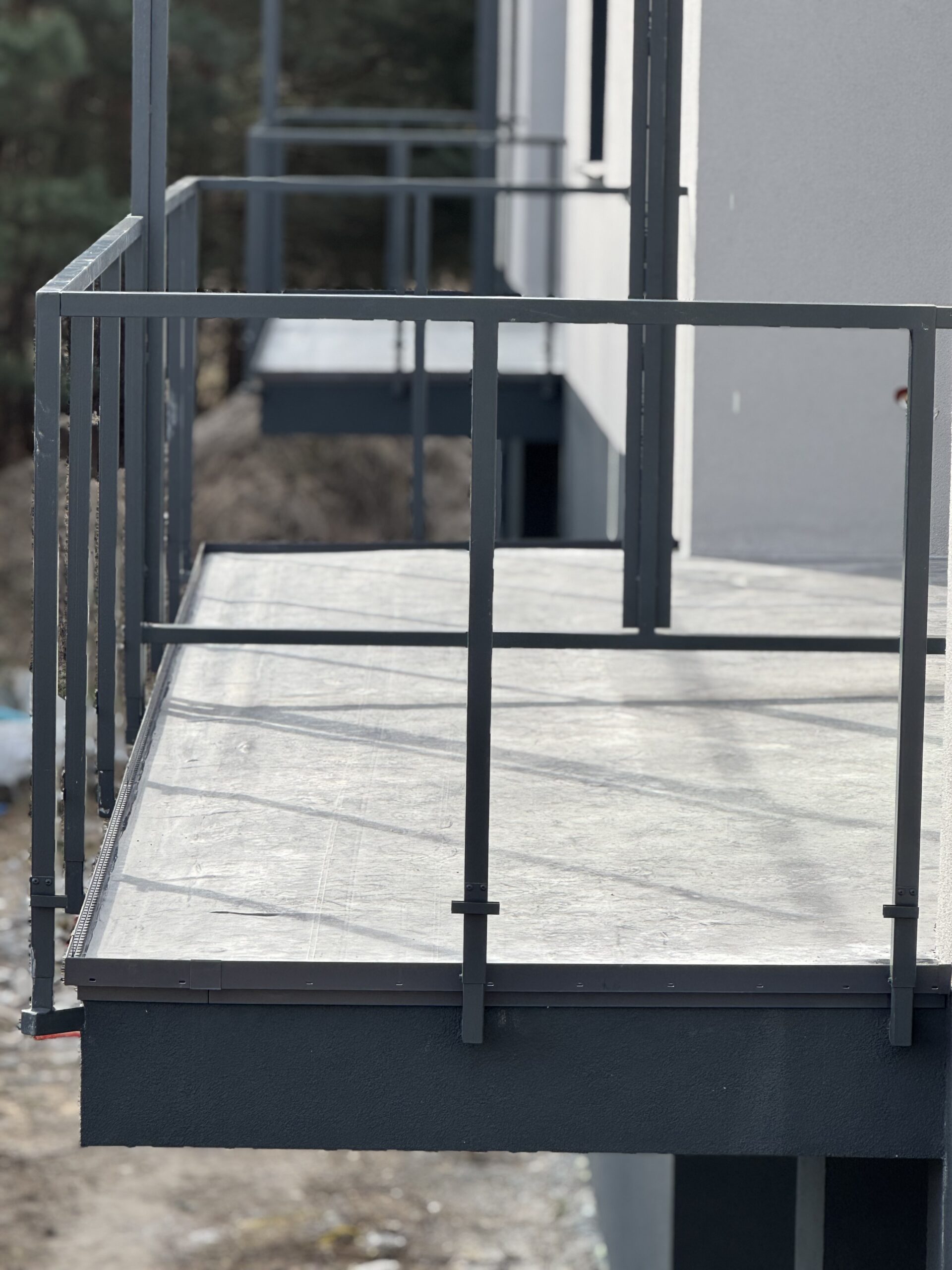 Oprócz standardowej izolacji powierzchni nad pomieszczeniami użytkowymi często izolacji potrzebują balkony wiszące gdzie woda może również dostawać się przez strop, taki balkon lub taras może być wykończony płytką na dystansie lub deska tarasowa na legarach.